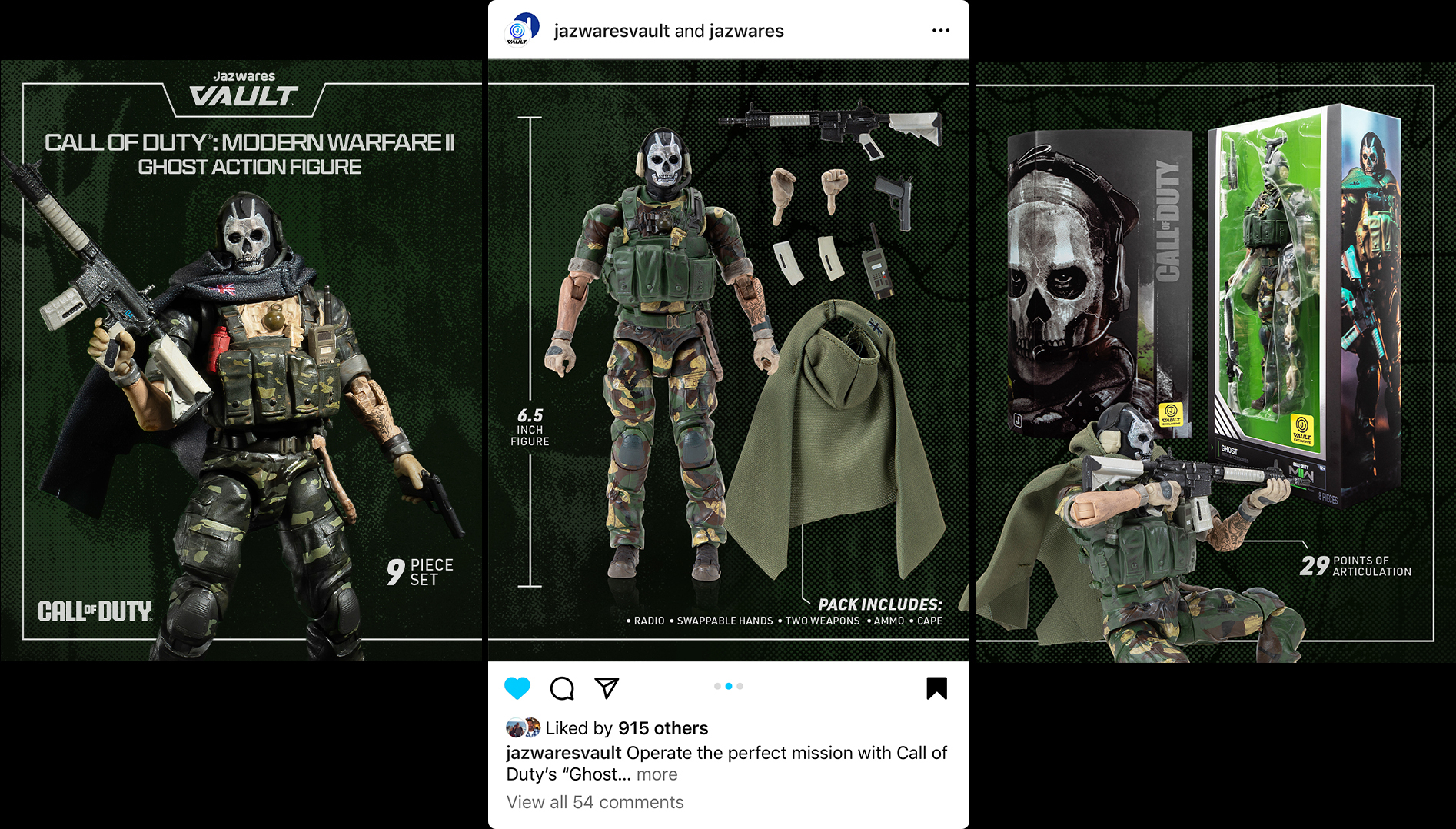 As the creative lead for the social launch of Jazwares' new collectible figure line, the development of the social brand look and feel was directed to effectively capture the essence of Jazwares Vault and resonate with the target audience. Utilizing Jazwares' product photography, eye-catching seamless carousels and innovative motion reels were crafted to engage viewers.